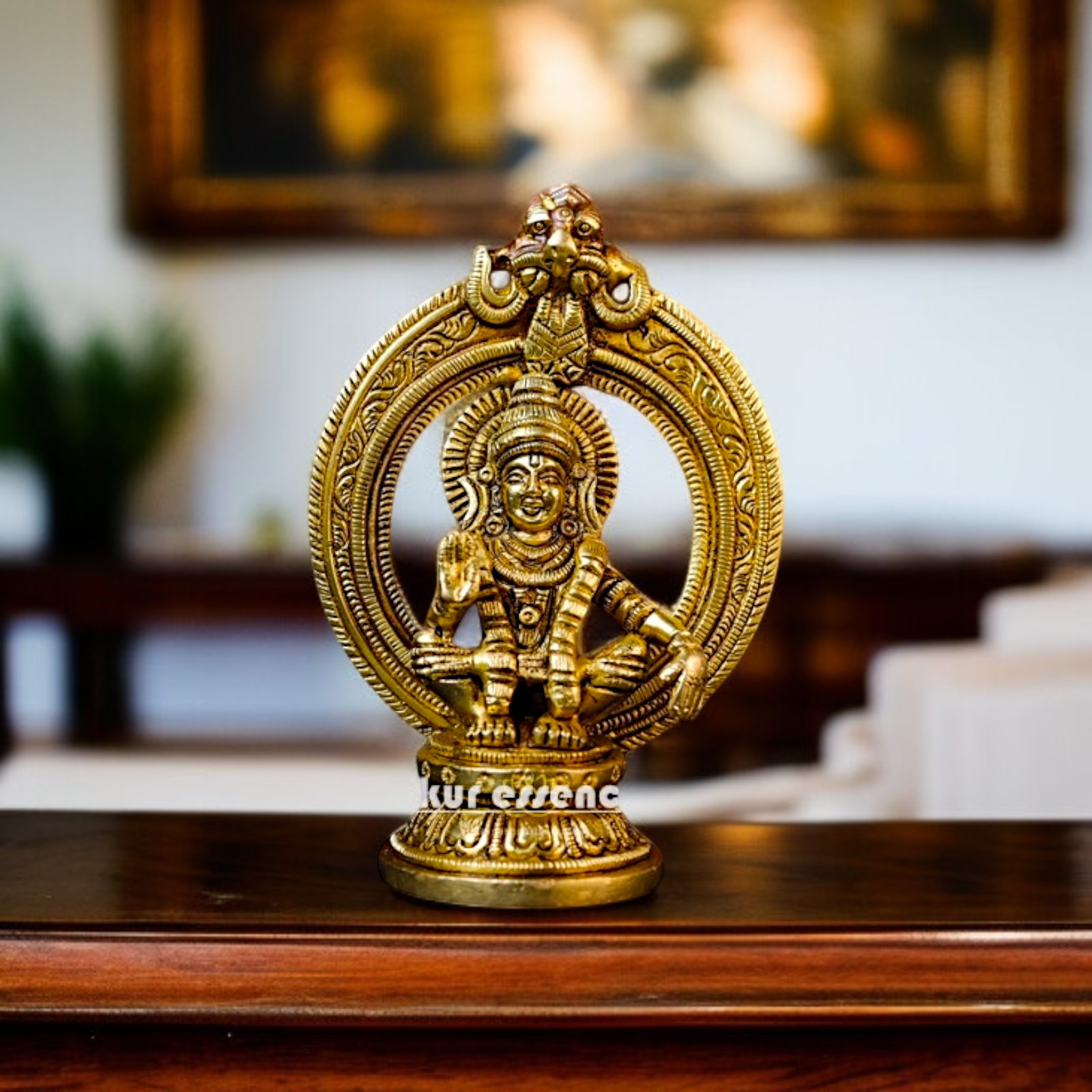 Honor the divine spirit of Dharma, righteousness, and courage with this intricately crafted Lord Ayyappan Brass Idol, brought to you by Nikur Essence. Revered across Southern India, Lord Ayyappan — also known as Dharmasastha, Manikandan, or Hariharasuta — symbolizes the triumph of truth, self-discipline, and the annihilation of evil.
