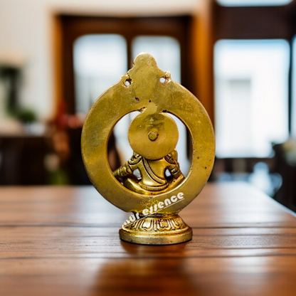 In this statue, Ayyappan is depicted in his classic yogic seated posture, adorned with sacred ornaments, weapons, and his characteristic calm yet powerful expression. This form captures both his divine birth and his role as the protector of Dharma.