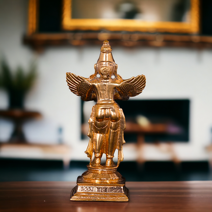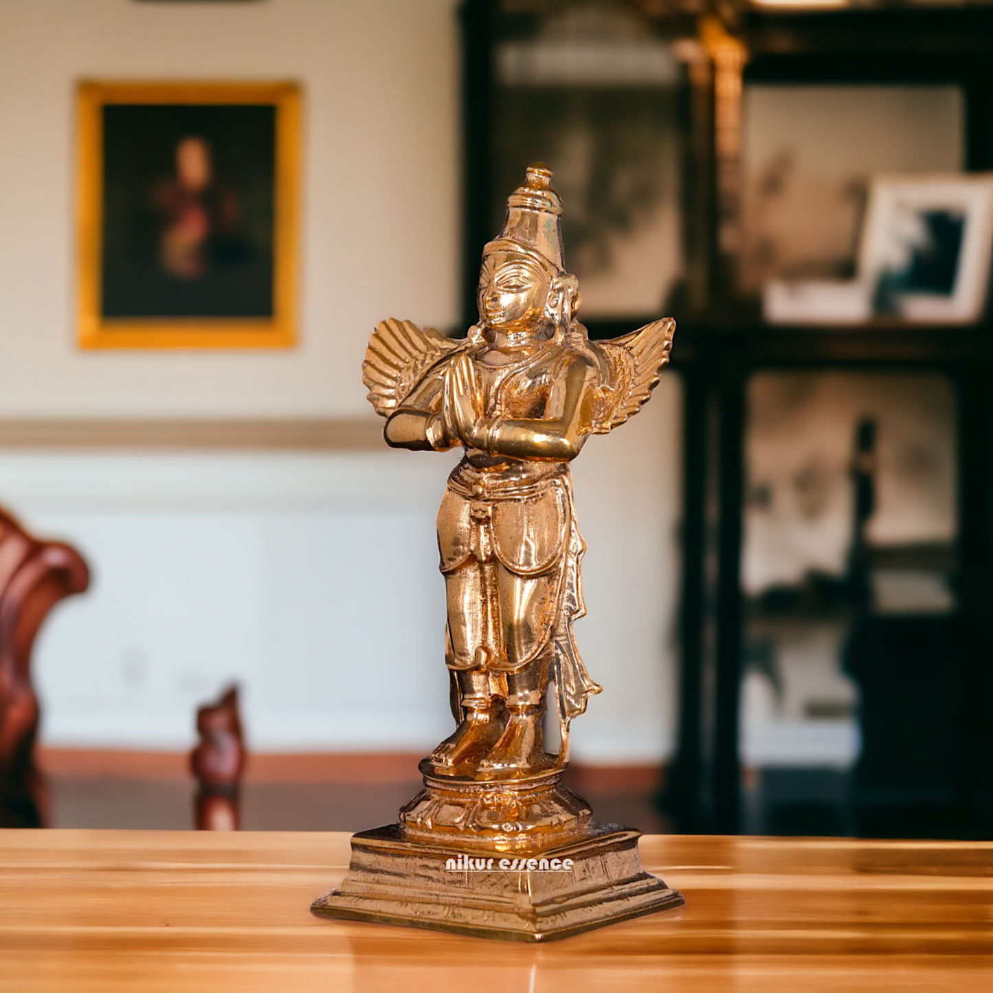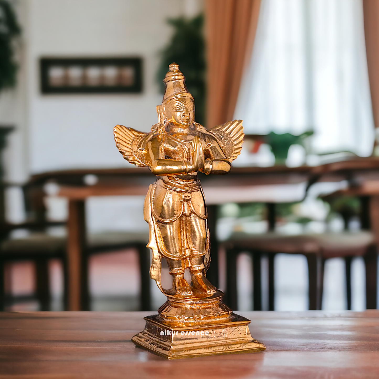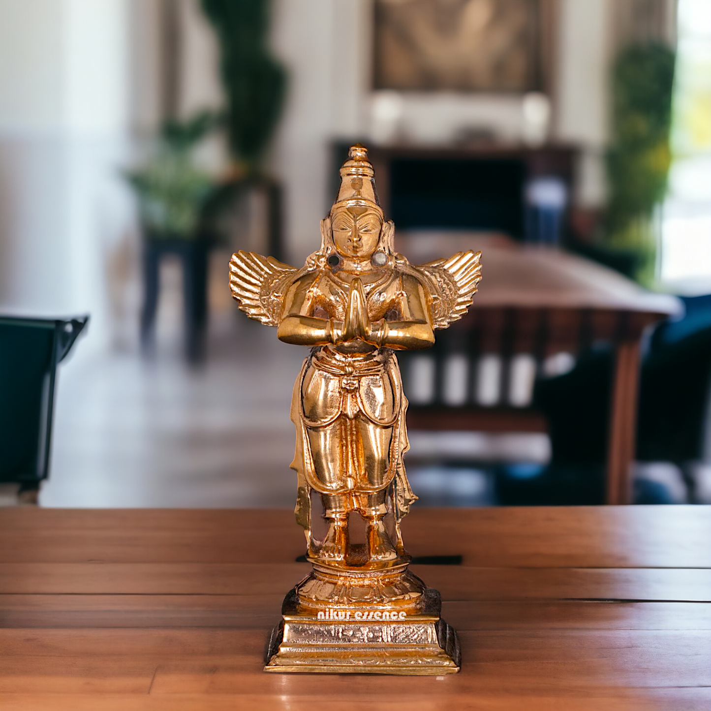 Enhance your spiritual space with the Garuda Standing Panchaloha Statue (4 Inches) by Nikur Essence. This intricately handcrafted idol represents Garuda, the divine vehicle of Lord Vishnu, symbolizing speed, power, and protection. Made from the sacred Panchaloha (five-metal alloy), this 4-inch statue radiates divine energy, making it ideal for home temples, pooja rituals, meditation spaces, and sacred decor. A symbol of strength and unwavering devotion, this exquisite piece is perfect for daily worship, gifting, or as a sacred collectible that brings blessings and positive vibrations into any space.