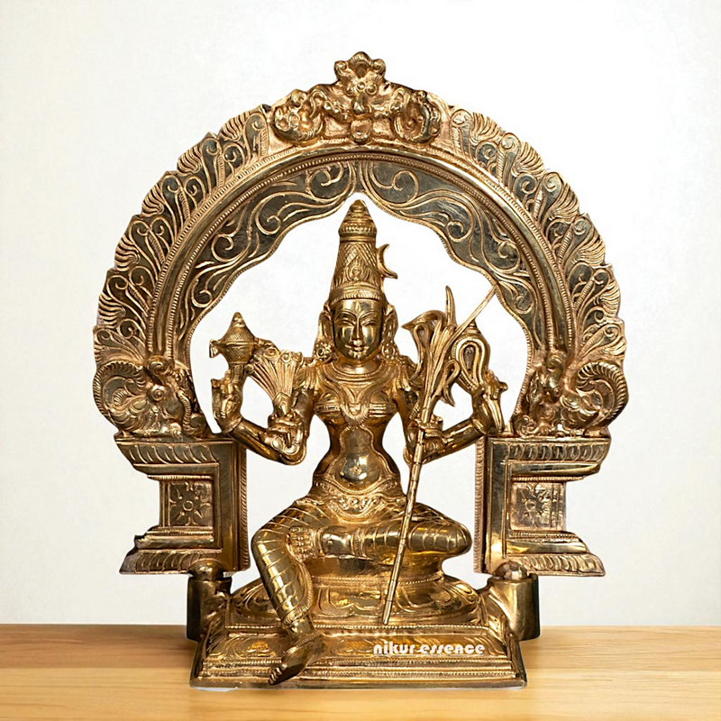 Goddess Lalita Devi Maa, the embodiment of supreme consciousness and divine grace, with this exquisitely crafted 13-inch Panchaloha idol. Made from the sacred five-metal alloy (gold, silver, copper, iron, and zinc), this idol radiates spiritual power and devotion. Lalita Devi, revered as the universal mother and supreme goddess of Shakti, symbolizes wisdom, beauty, and divine love. This idol is perfect for home altars, temples, or as a sacred gift for spiritual seekers.