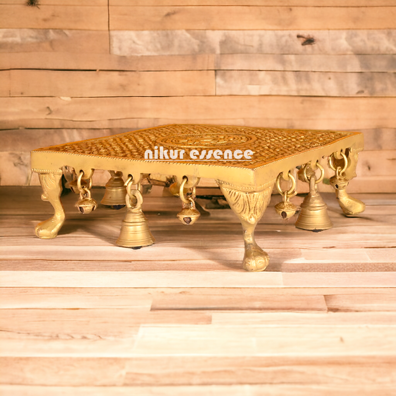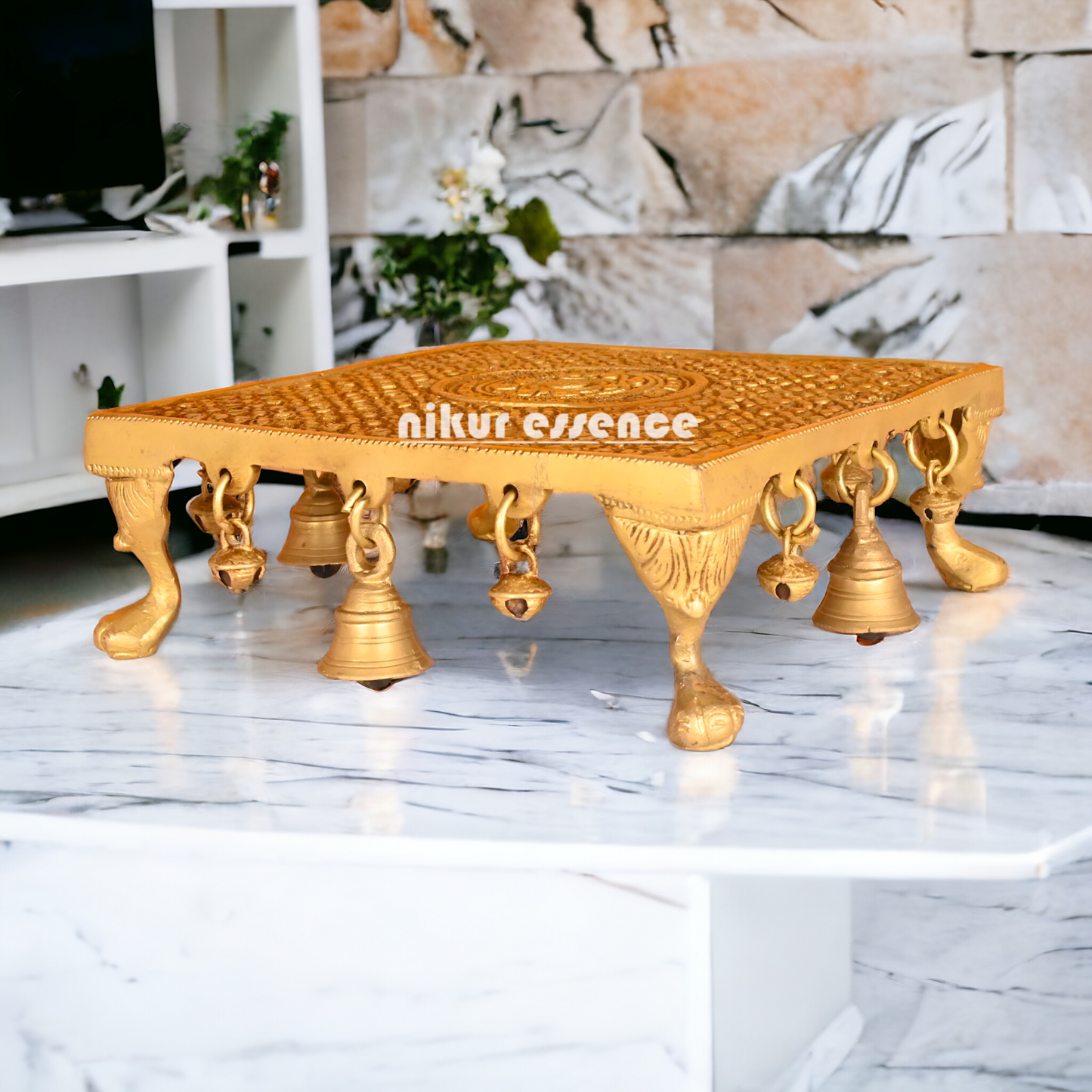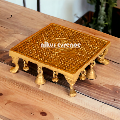 Ideal for your puja ceremonies, this chowki provides a regal and durable platform for your deities and offerings. Its solid brass construction ensures longevity and resilience, making it a cherished addition to your religious practices.