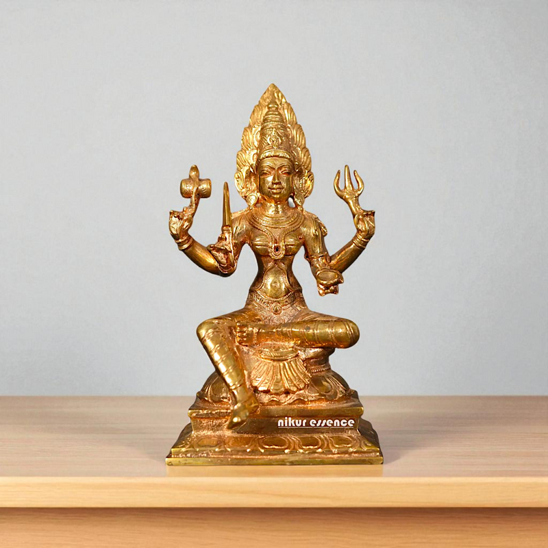 Mariamman Mata Seated on Throne Panchaloha Idol (6 inches) from Nikur Essence. Crafted with precision using the sacred five-metal alloy (Panchaloha), this beautifully detailed idol depicts Goddess Mariamman, the revered deity of health, rain, and prosperity, seated on her divine throne. Known for her protective and nurturing powers, Mariamman blesses devotees with well-being, strength, and positivity. Perfect for home altars, temples, and meditation spaces, this sacred idol brings peace, prosperity, and divine grace into your surroundings.