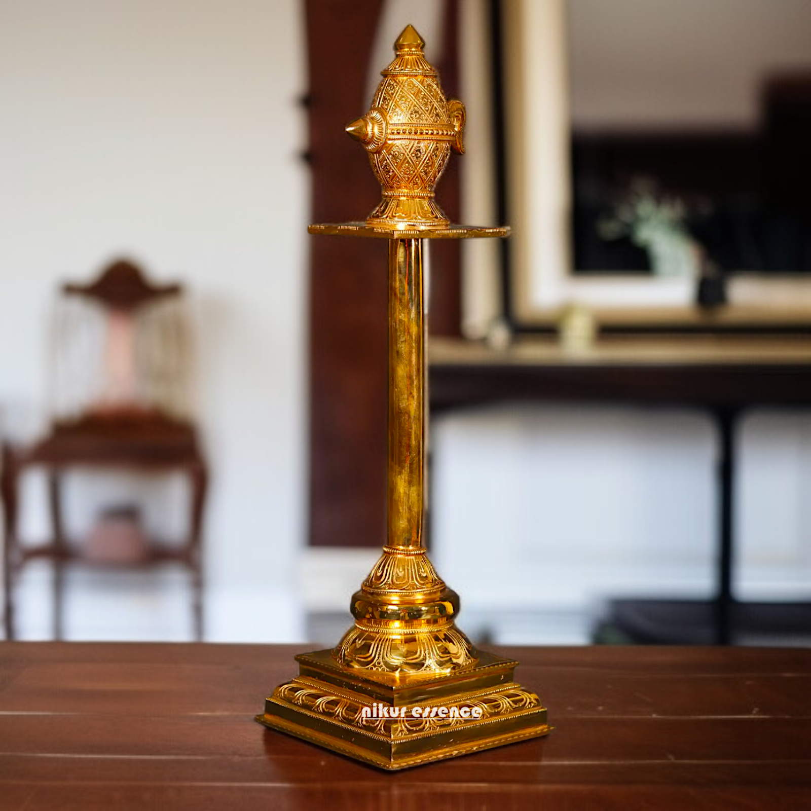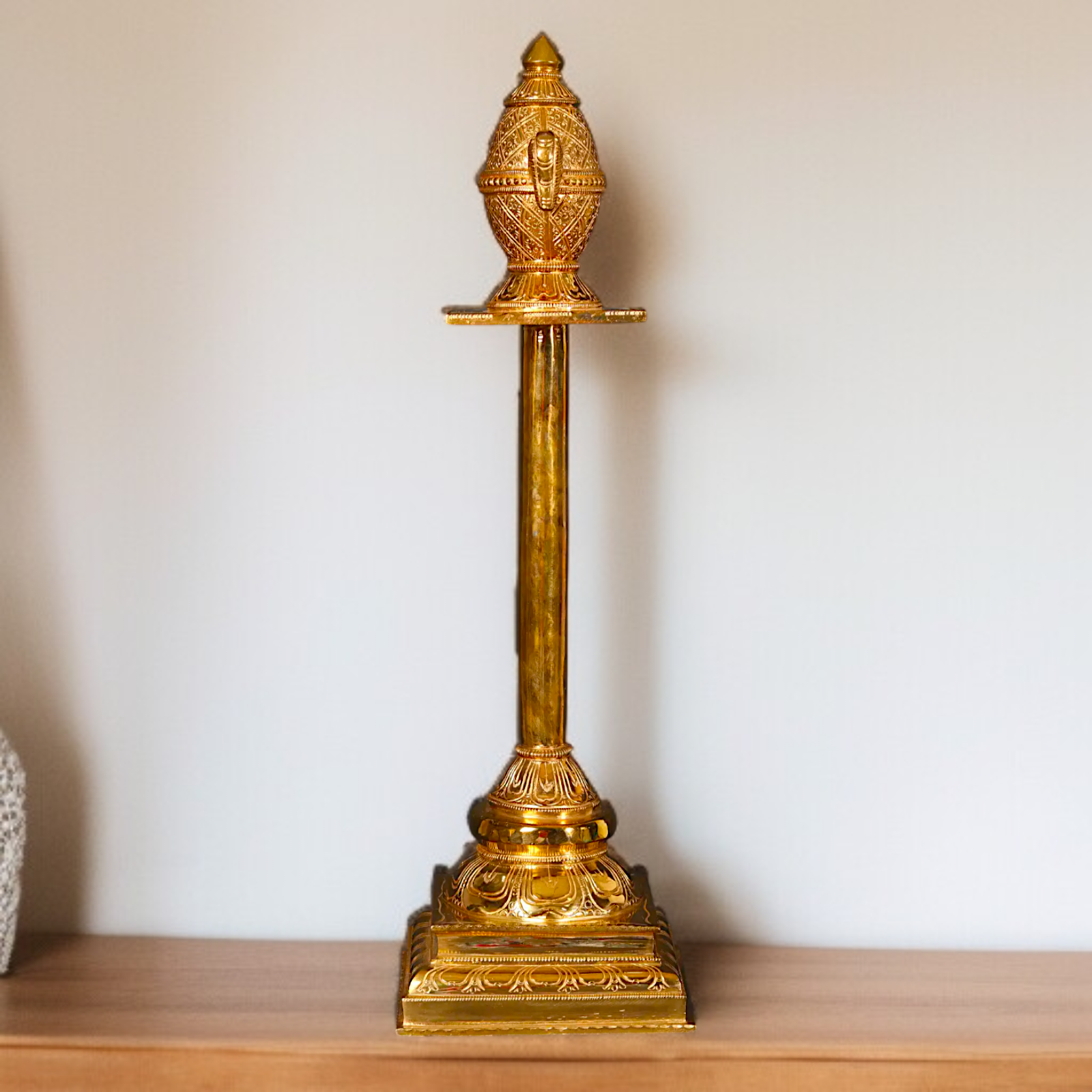 The Panchaloha Elephant Goad (24 Inches) by Nikur Essence is a finely crafted spiritual and symbolic artifact representing control, guidance, and divine authority. Traditionally associated with Lord Ganesha and various Hindu deities, the goad (ankusha) symbolizes wisdom, discipline, and the ability to steer life's course in the right direction. Made from the sacred Panchaloha (a blend of five auspicious metals), this intricately detailed piece is perfect for temples, spiritual spaces, or as a collector’s item. Its antique finish enhances its majestic presence, making it a unique addition to any sacred or decorative setting.