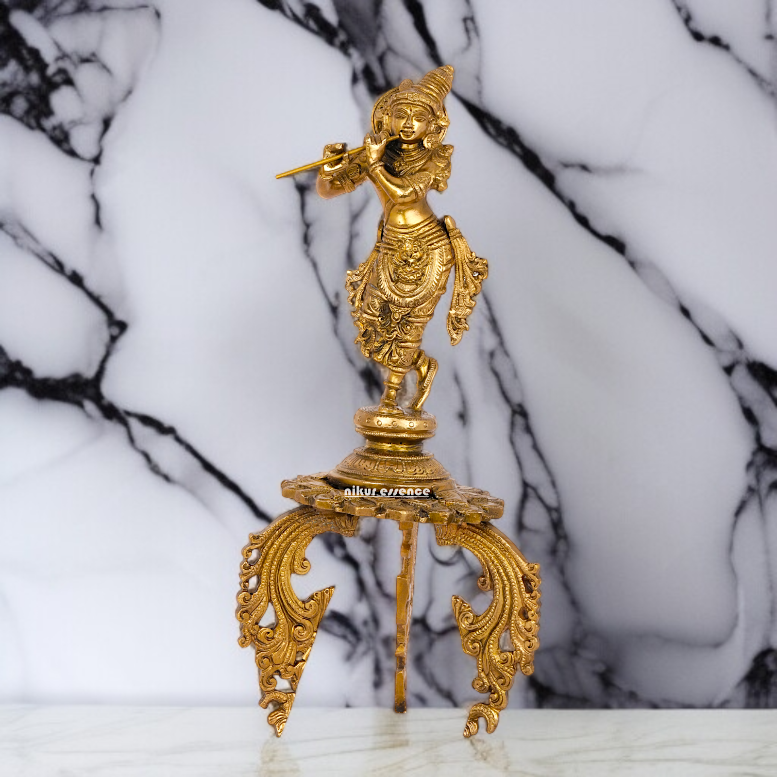 Invite divine harmony into your space with the Panchaloha Krishna Standing on Stand, Playing Flute – 16 Inches by Nikur Essence. This exquisitely crafted statue captures Lord Krishna in a graceful pose, enchanting the universe with his divine flute. Made from a sacred blend of five metals, this idol radiates spiritual energy, symbolizing love, joy, and devotion. The intricate detailing and traditional craftsmanship make it a perfect addition to home temples, meditation spaces, or as a statement décor piece. A timeless symbol of divine love, this Krishna idol is an ideal gift for housewarmings, festive celebrations, and spiritual seekers.