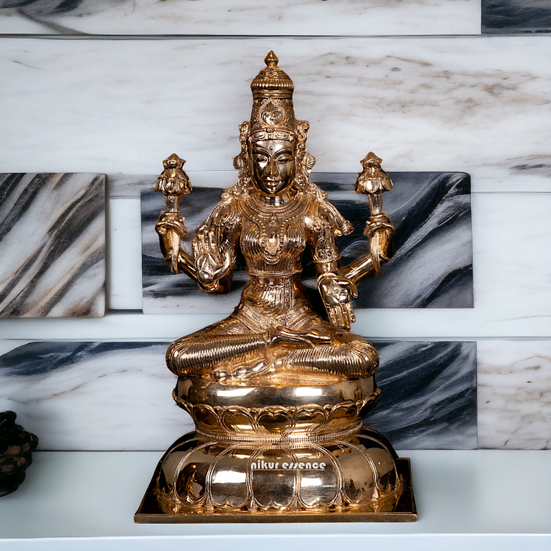 Invite divine grace and prosperity into your home with this exquisitely crafted Panchaloha Lakshmi Seated Idol (12 Inches). Made using the traditional five-metal alloy (gold, silver, copper, iron, and zinc), this idol embodies sacred energy and spiritual significance. The goddess Lakshmi, seated in a blessing posture, radiates wealth, fortune, and auspiciousness. Perfect for home altars, pooja rooms, temples, or as a thoughtful gift for religious occasions.