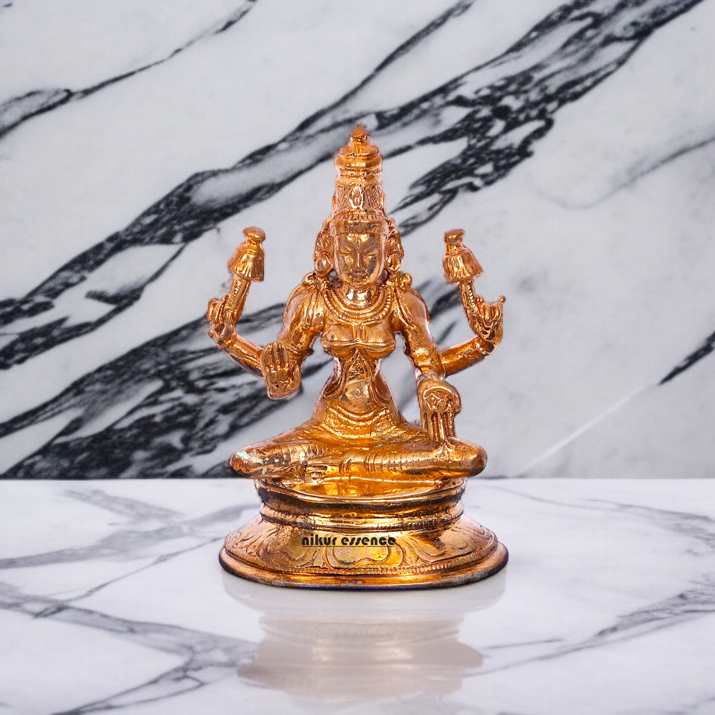 Panchaloha Maha Lakshmi Blessing Statue (3.5 inches, Four-Armed) from Nikur Essence. Meticulously crafted from the sacred five-metal alloy (Panchaloha), this exquisite statue embodies Goddess Maha Lakshmi’s divine presence, radiating abundance, wealth, and blessings. With her four arms symbolizing righteousness, prosperity, desire, and liberation, this compact yet powerful idol is perfect for home altars, offices, meditation spaces, or as a sacred gift. Embrace the auspicious energy of Maha Lakshmi and welcome positivity, fortune, and spiritual well-being into your life.