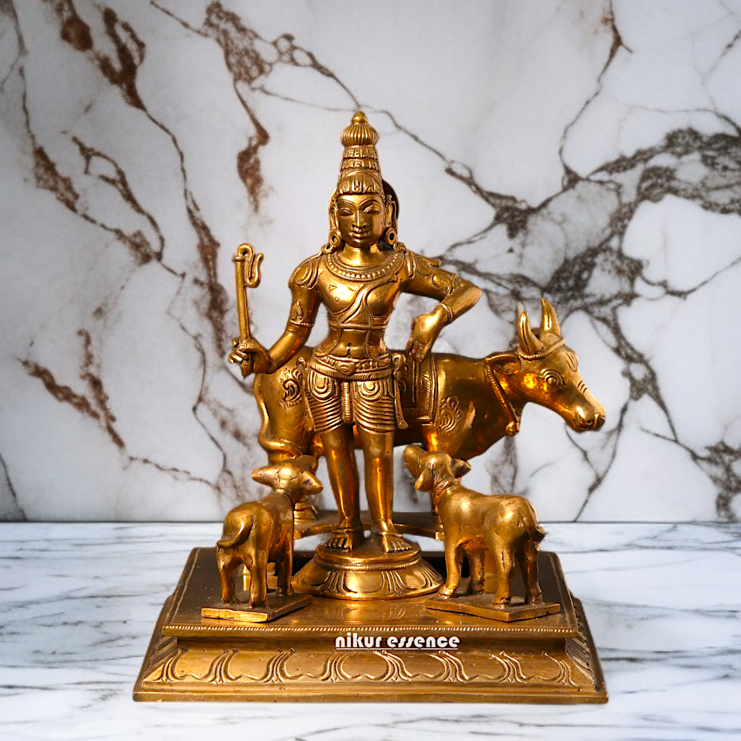 Bring home the divine presence of Lord Rajagopalaswamy with this 8-inch Panchaloha statue, beautifully depicting the Lord with a sacred cow and calf. A divine form of Lord Krishna, Rajagopalaswamy symbolizes love, protection, and prosperity. This intricately handcrafted idol, made from the sacred five-metal alloy (Panchaloha), exudes spiritual energy and harmony. Perfect for pooja rooms, temples, and sacred spaces, this idol invites blessings of abundance, devotion, and peace into your home.
