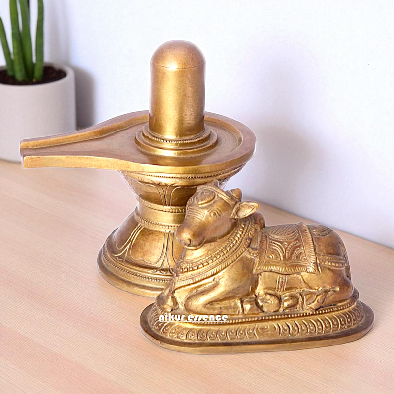 Elevate your spiritual ambiance with this intricately handcrafted Shiva Linga with Nandi idol, presented by Nikur Essence. Cast in traditional Panchaloha (a sacred five-metal alloy of gold, silver, copper, zinc, and iron), this sculpture represents divine balance and the eternal connection between Lord Shiva and his devoted companion, Nandi the bull.